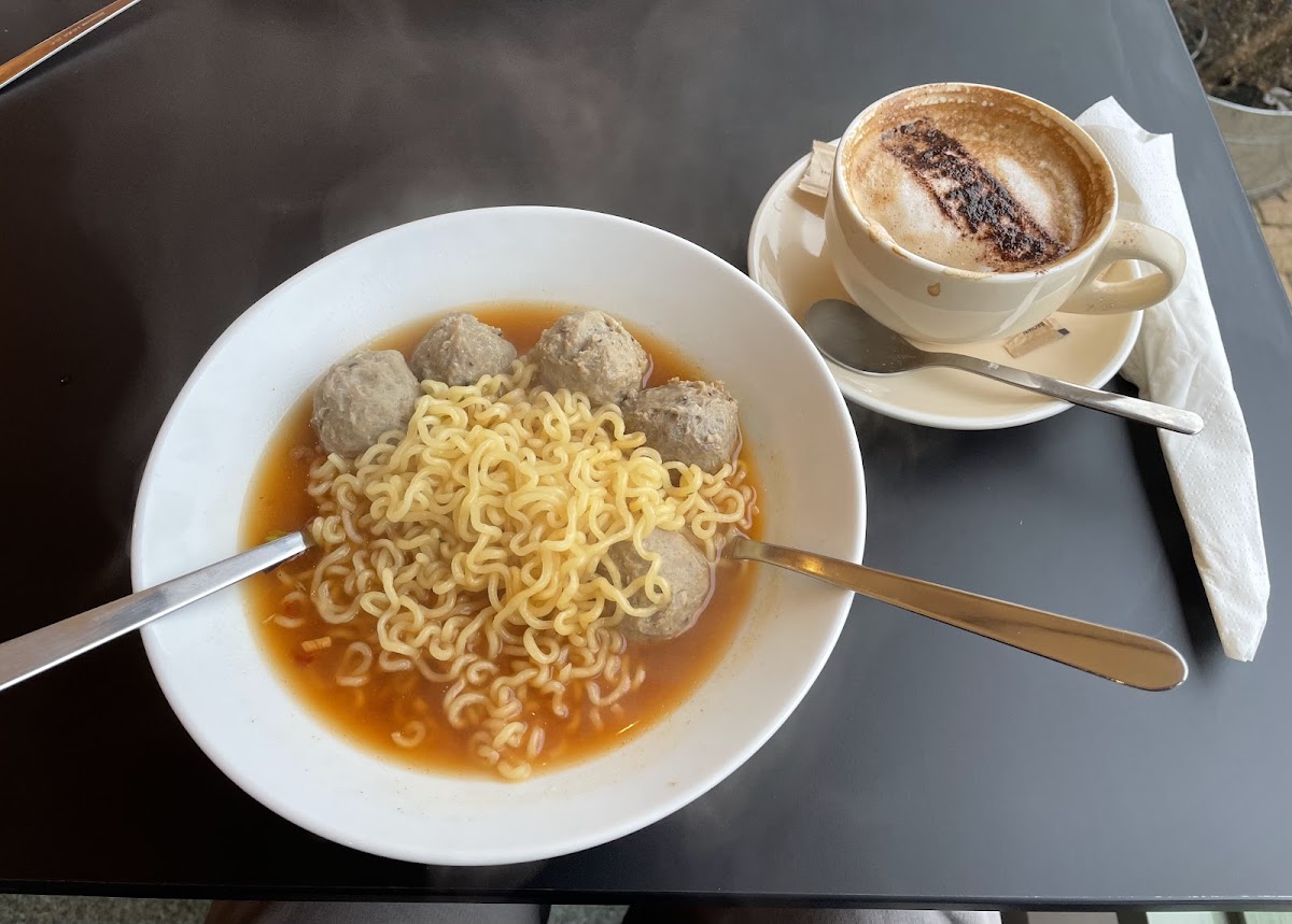 Locals drop by for a relaxed breakfast or lunch where they can enjoy everything from an English Breakfast or avocado on sourdough toast to more unique offerings like homemade black pepper beef balls served with Shin Ramyun noodles or satay-coated beef noodles. The portions hit a comfortable balance—not too large but satisfying enough, especially paired with a side of eggs on toast, which feels like a local ritual here.